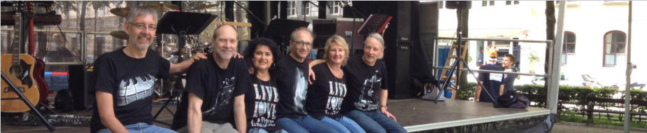 Wir sind eine gut gelaunte und vielseitige  Coverband im mittleren Alter, 2 Mädels und  4 Jungs. In unserer Musikkiste haben wir  reichlicn Material: Pop, Rock und Schlager,  von Oldies bis zu aktuellen Songs, alle zum  Mitsingen und zum Tanzen. Unsere instrumentale Besetzung besteht  aus Gitarre, Keyboard, Schlagzeug und  Bass. Zur handgemachten Musik ohne  Playback und Midi-Einspielungen wird bis  zu 4-stimmig gesungen.  Und: ganz, ganz leise können wir nicht :-)